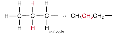 Si on enlève un hydrogène terminal (en noir), on obtient le groupement normal ou n-propyle.